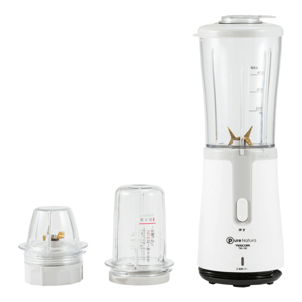 メーカーテスコム品名ミル&ミキサー ホワイト TML162-W 品番又はJANコードJAN:4975302801302サイズ-重量-商品説明●毎日の料理に使いやすい これ1台でマルチに使える!●茶葉専用の容器でお茶を粉末に。