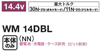 ・工機ホールディングス/ハイコーキ 14.4V 充電式 電子パルスドライバー WM14DBL(NN)(本体のみ) 標準付属品:【バッテリー・充電器・ケース・ビット別売】 ・作業音の静かな電子パルス方式 電子パルス方式の採用により、トップクラスの低騒音を実現。